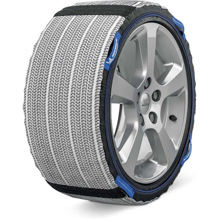 Michelin Sos Grip Evolution 7 son fundas textiles de alto rendimiento, certificadas según la norma europea en16662-1:2020. fáciles de poner y quitar, ofrecen excelente tracción y seguridad en nieve y hielo, incluso en vehículos con espacio reducido en el paso de rueda.