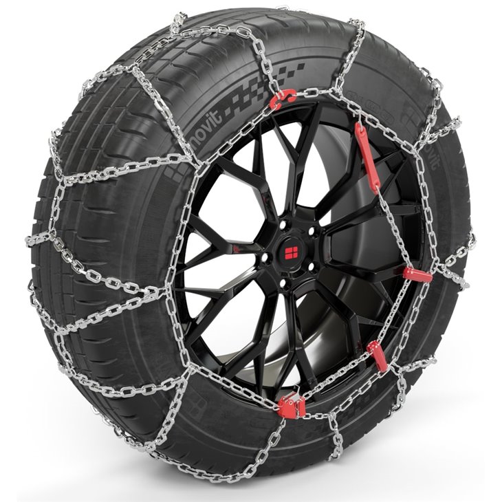 Cadenas de nieve talla 360 de acero cementado con eslabones de 16 mm para SUV, 4x4 y furgonetas. Sistema de tensión con bloqueo y homologación TÜV-GS y EN 16662-1. Envío gratuito en España (aplicable al finalizar el pedido)