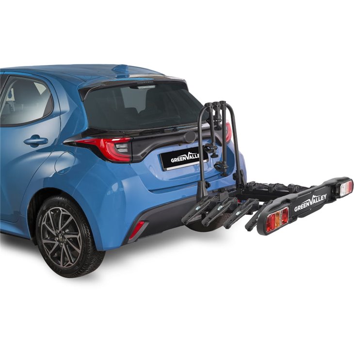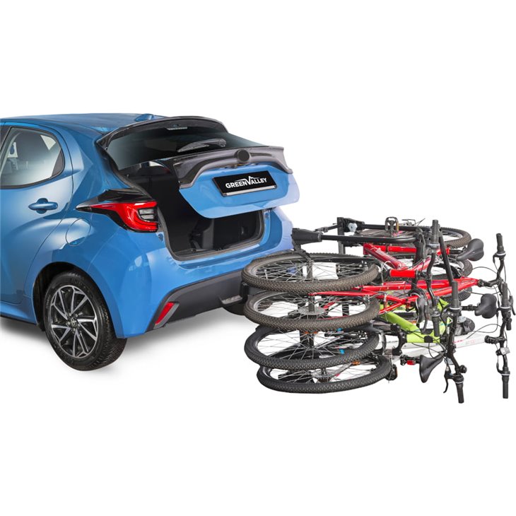 Su sistema plegable y abatible te permite acceder al maletero del vehículo sin desmontar el portabicicletas, incluso en todoterrenos, SUV y furgonetas con portón trasero largo. Plegado, ocupa el mínimo espacio en el garaje.